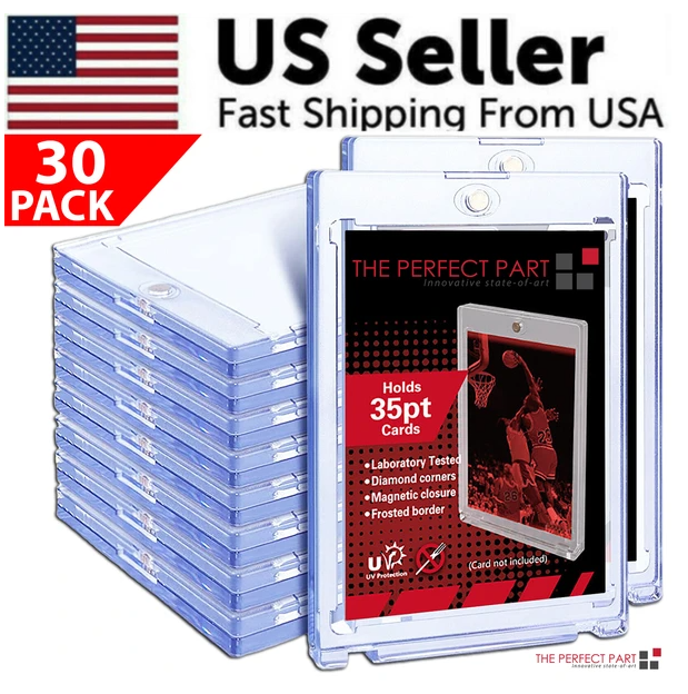 30 Pack Magnetic Trading Sports Card Holders 35pt One-Touch Hard UV Protection